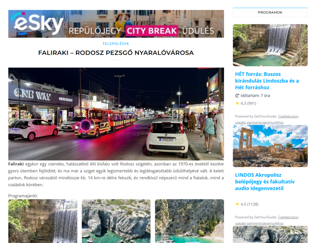 Az oldalon programajánlók, affiliate partnerek biztosítanak folyamatos bevételt a tulajdonosnak